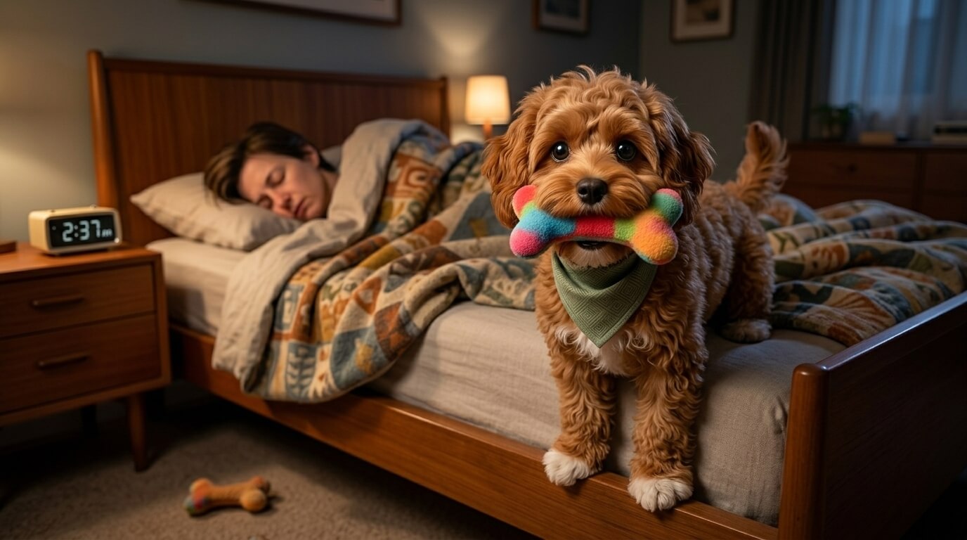 It was 10:30 PM on a Tuesday. I was standing in my bathroom, half-asleep, toothbrush in hand, when I felt it — a soft thud against my foot. I looked down, and there was Ollie, my caramel-colored Cavapoo in his tiny sage green bandana, staring up at me with the energy of a golden retriever puppy who just discovered caffeine.